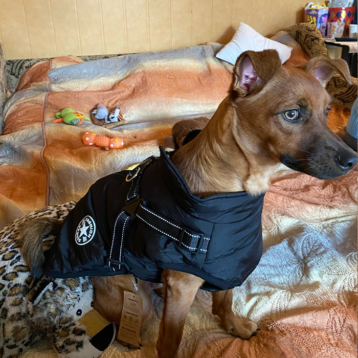 Kabát se snadno obléká, neruší psa při pohybu a chrání ho před větrem, deštěm a chladem!