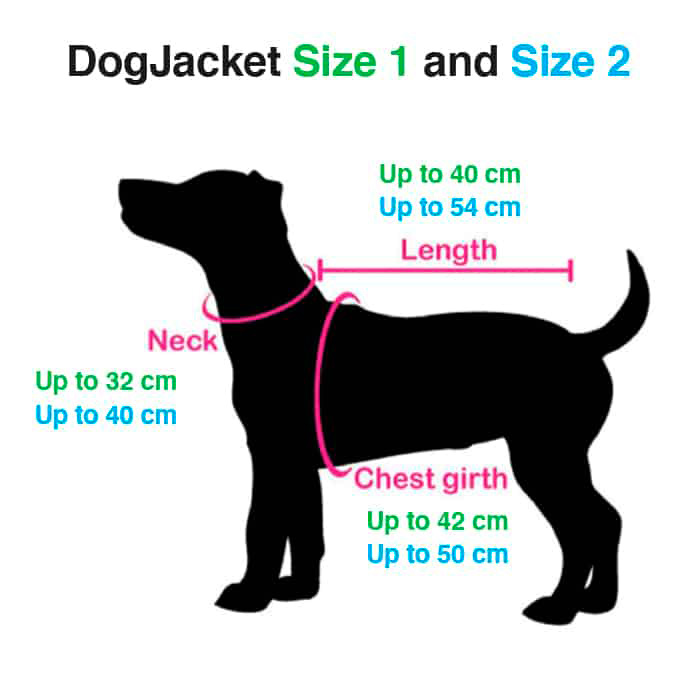 Velikost 1 (S/M): vhodné pro psy s délkou zad do 40 cm, obvodem krku do 32 cm a obvodem hrudníku do 42 cm. Vhodné pro maltézáčky, pomeraniany, yorkšírské teriéry, pekinéze, Jack Russell teriéry, mopse, mini knírače a další podobně velká plemena. Velikost 2 (L/XL): vhodné pro psy s délkou zad do 54 cm, obvodem krku do 40 cm a obvodem hrudníku do 50 cm. Vhodné pro bostonské teriéry, bígly, kokršpaněly a podobně velká plemena.