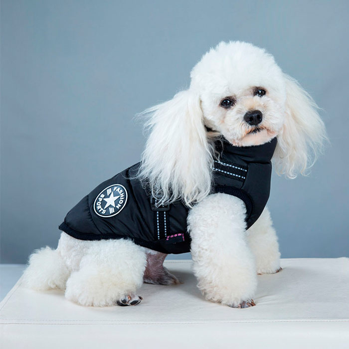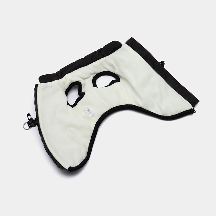Přetáhněte kabát přes přední tlapku a zapněte zip. Nastavte popruhy tak, aby zimní kabát vašeho psa dobře seděl. Připevněte vodítko na určené místo, které se nachází uprostřed zad kabátu. Doporučuje se ruční praní. Nedoporučujeme používat sušičku.