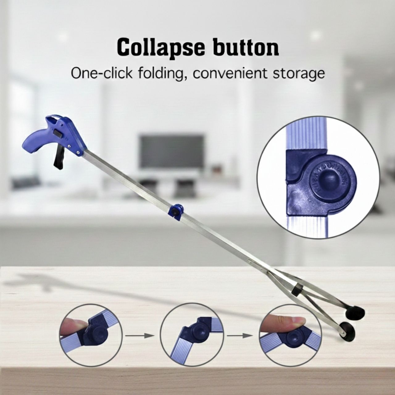 Grabber je užitečný nejen venku, ale i doma. Umožňuje snadno dosáhnout na předměty pod postelí, za skříní nebo na vyšších policích. Díky gumovým úchytům na sběrači můžete snadno uchopit různé předměty - sklenice, květináče, lahve atd. Jelikož je skládací, můžete ho po použití snadno uložit do skříně nebo zásuvky.