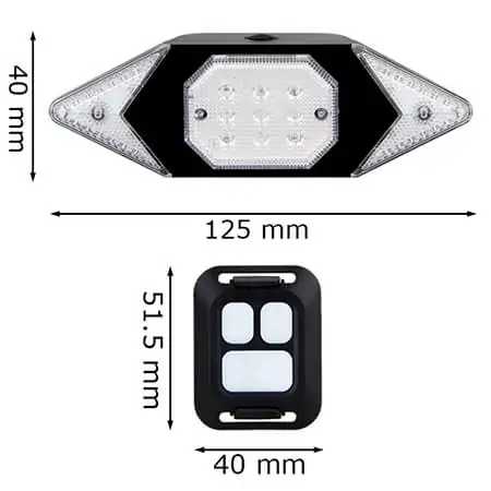 | Balení obsahuje: | 1x směrové světlo, 1x dálkové ovládání, 1x USB nabíjecí kabel, 2x instalační pomůcka |